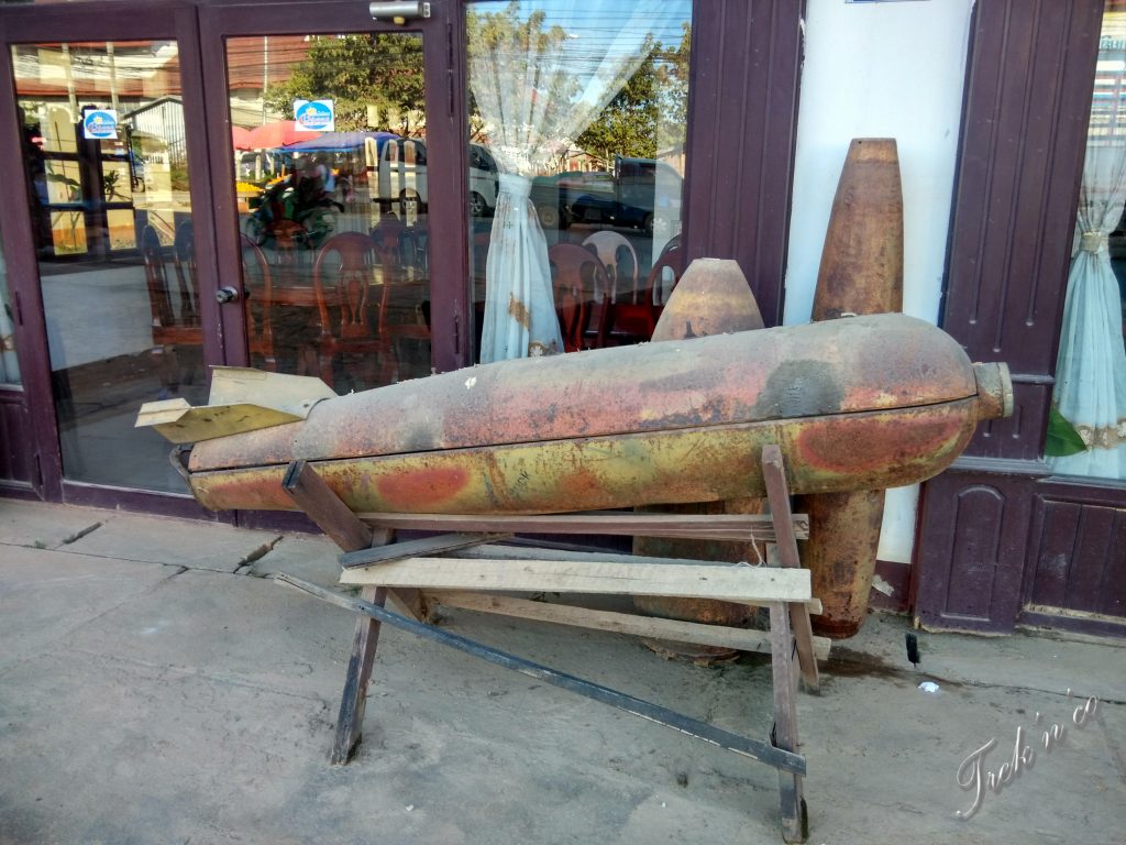 Beaucoup de bombes datant de la guerre d’Indochine n’ont d’ailleurs pas encore explosé, et sont régulièrement retrouvées dans la région. En se baladant dans la ville, on peut trouver des vestiges de bombes désamorcées, et aussi croiser ce genre de panneau très rassurant :